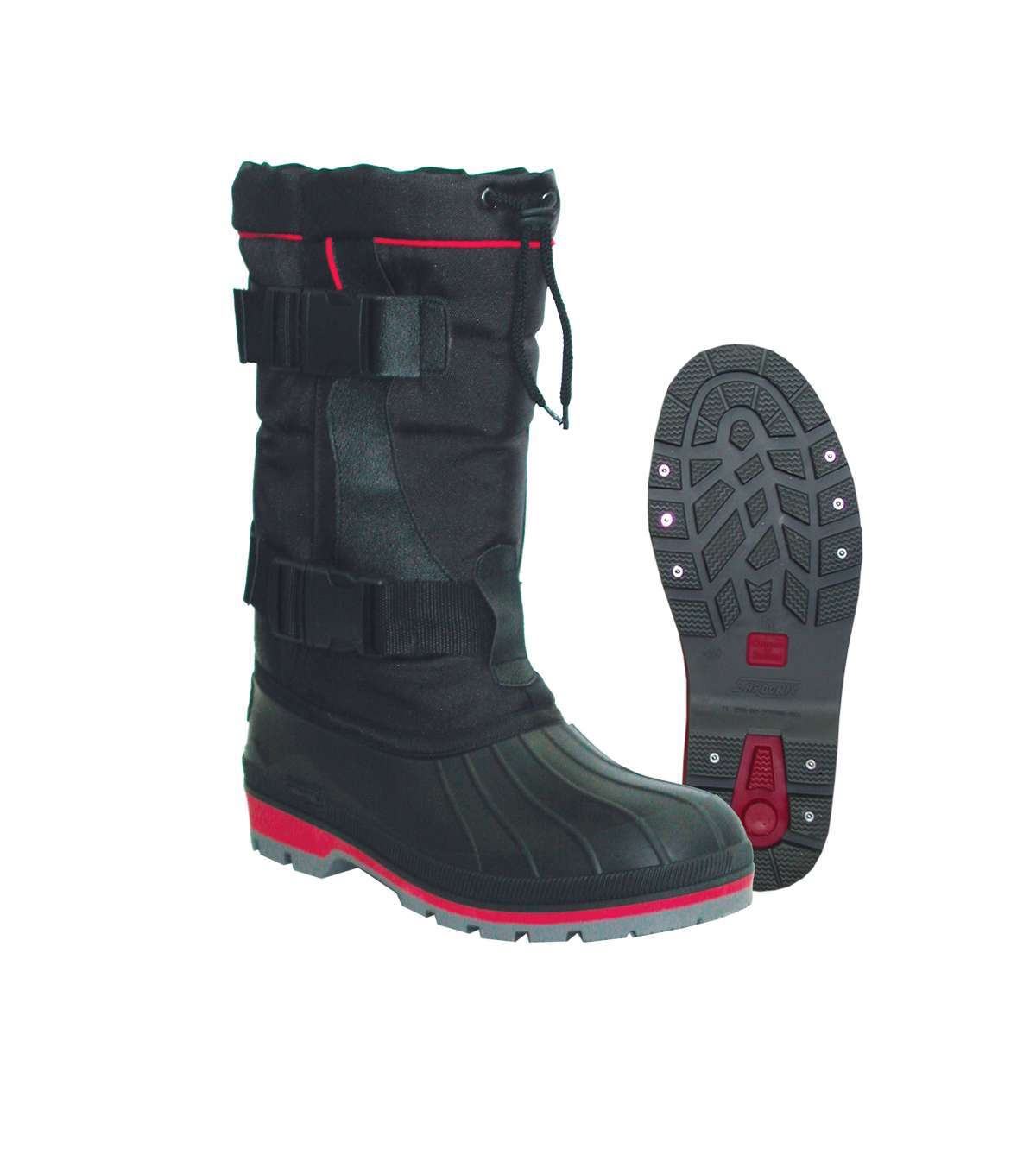 - Безопасность: Подошва с глубоким протектором прошипована стальными шипами, что гарантирует отличное сцепление с поверхностью.