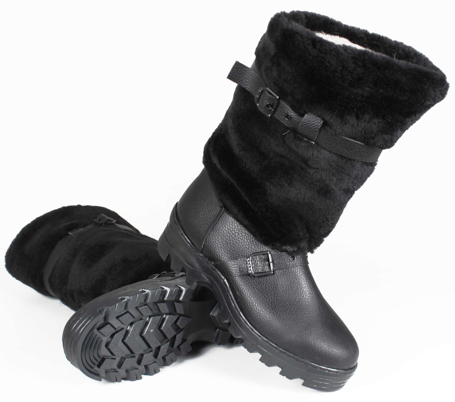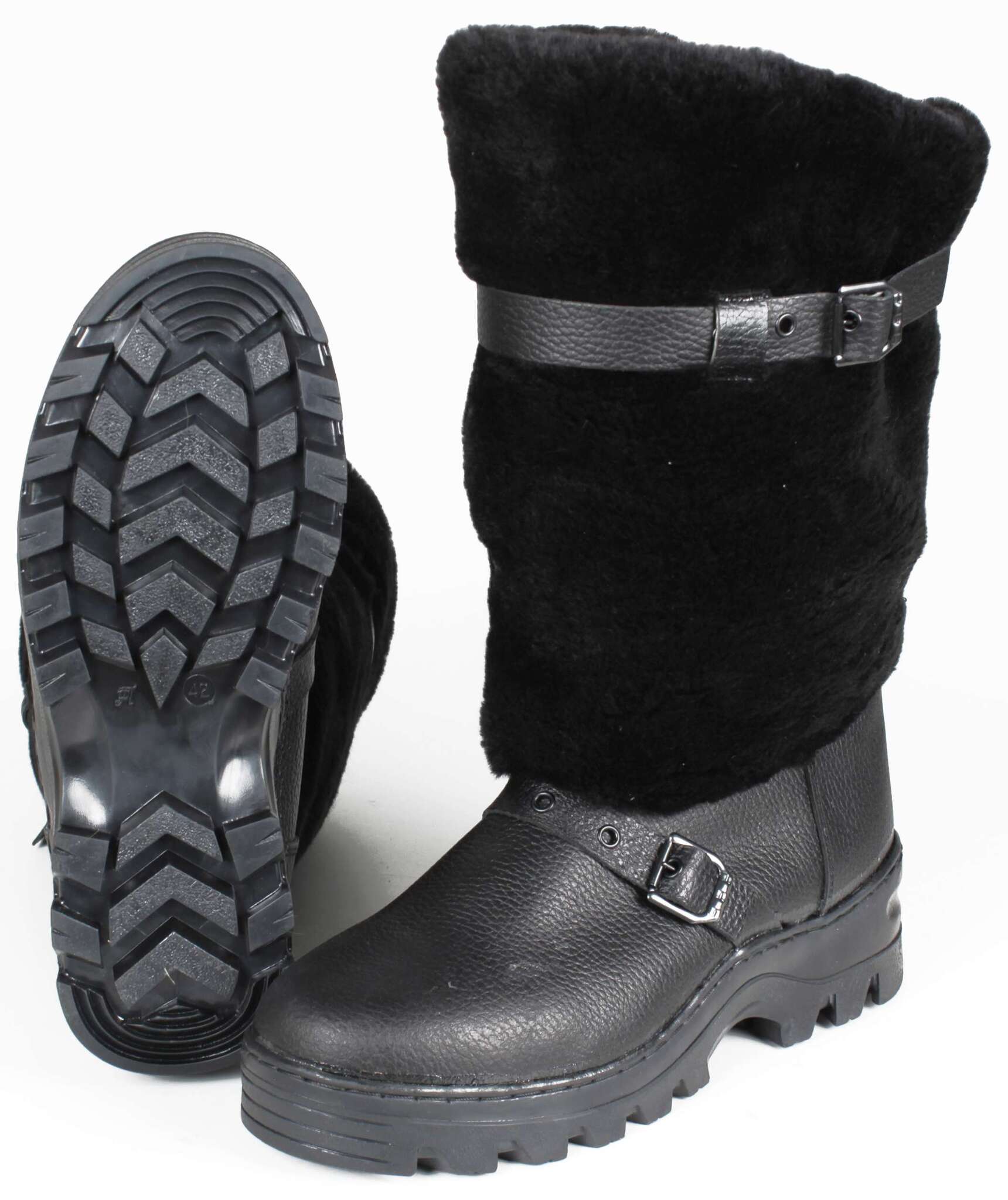 - Голенище: выполнено из искусственного меха под мутон, что придает дополнительный комфорт.