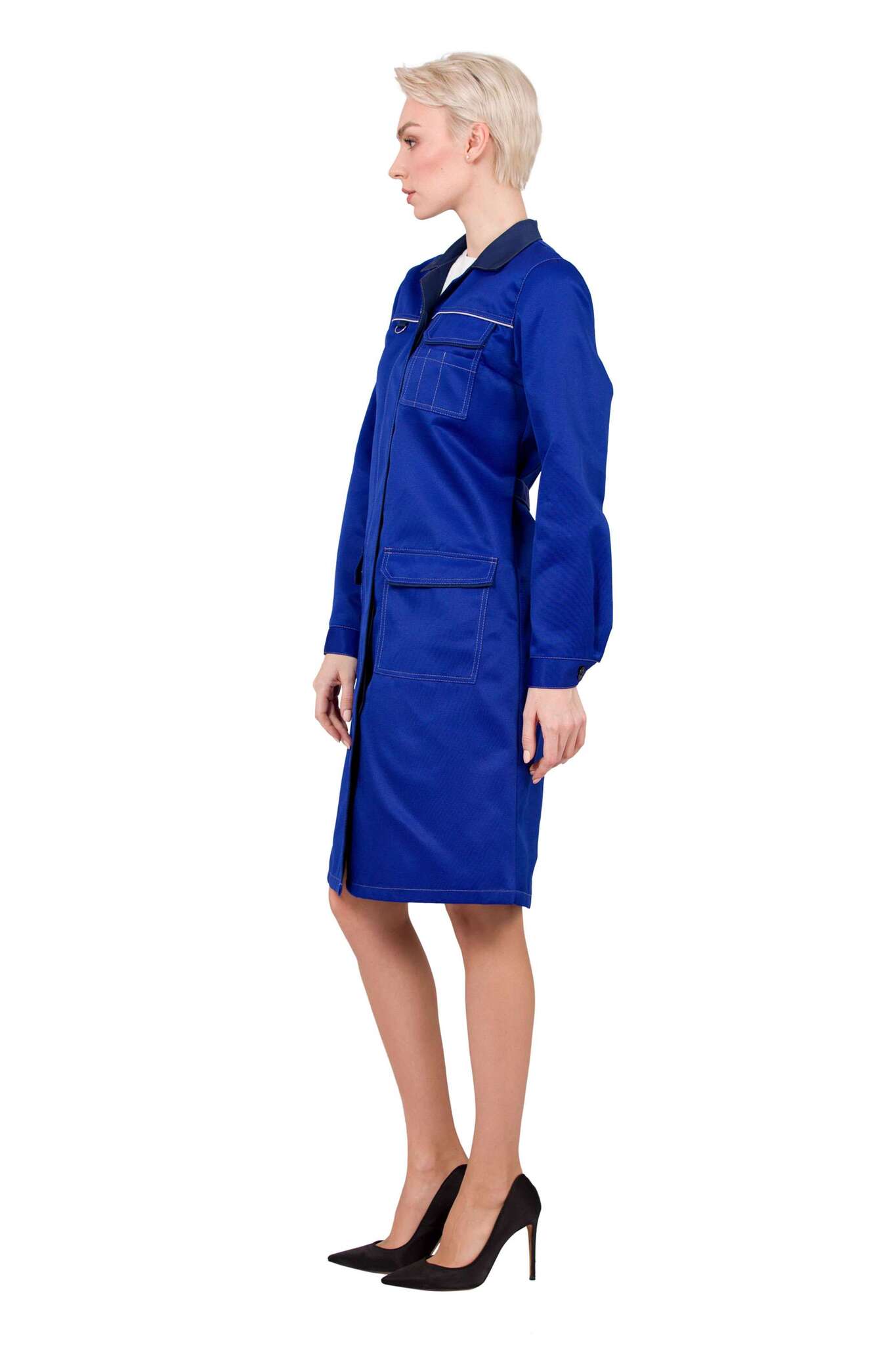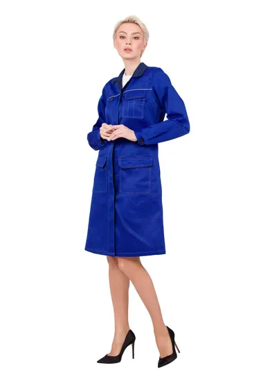 Халат «Страйк» в васильковом цвете — это идеальное решение для предприятий и заводов, где важны как стиль, так и функциональность. Изготовленный из смесовой ткани, этот халат сочетает в себе женственный силуэт и практичные элементы, что делает его незаменимым в рабочей среде.