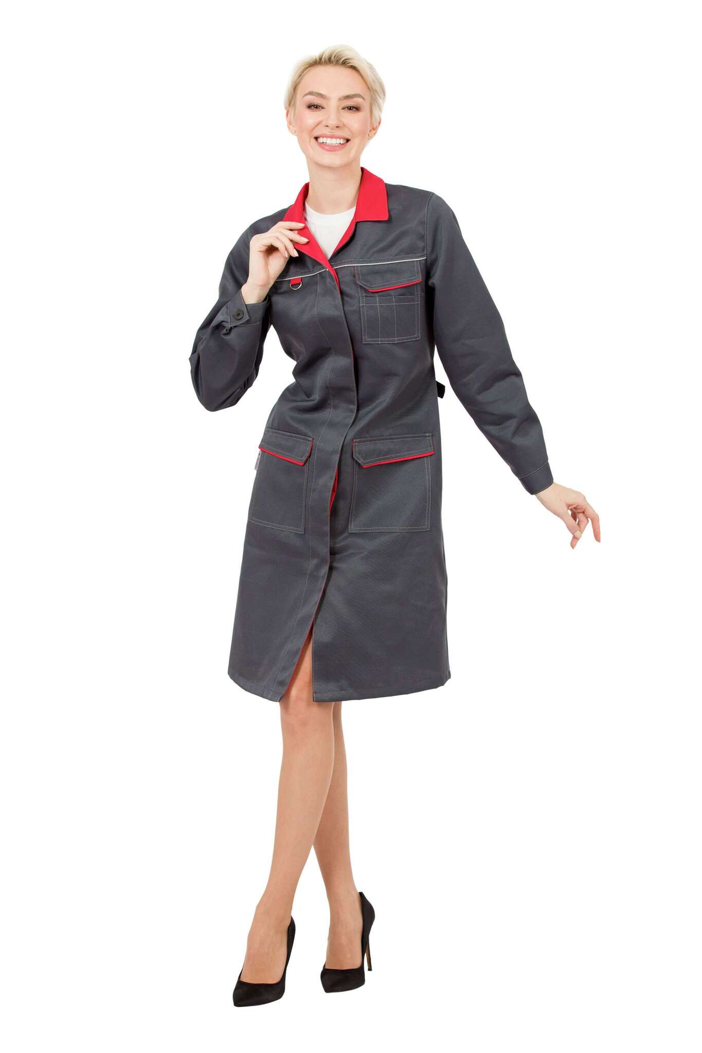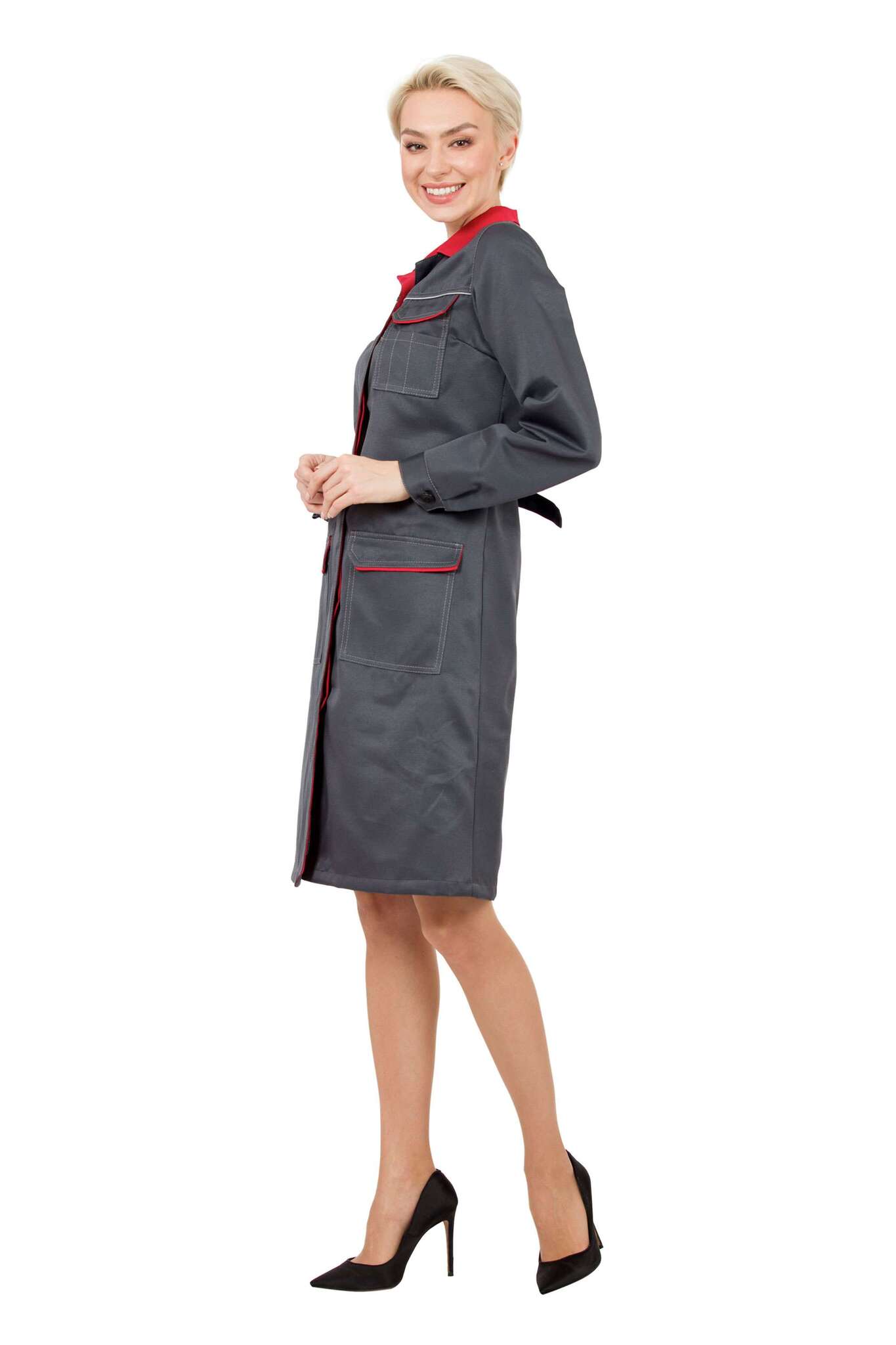 С данным халатом ваши сотрудники будут выглядеть стильно и профессионально, не теряя при этом функциональности и комфорта в работе.