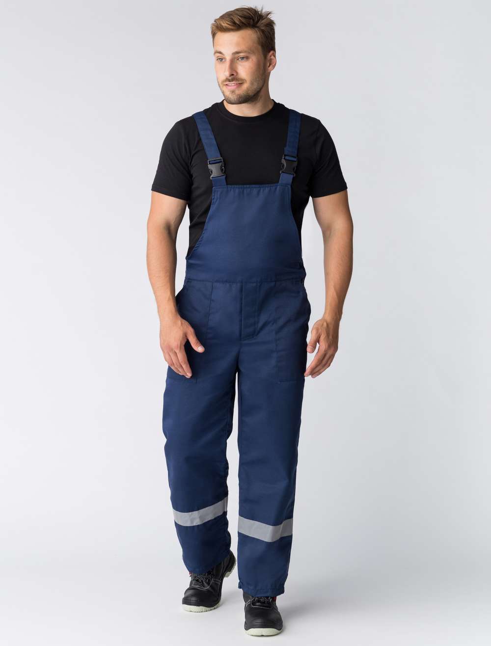 - Полукомбинезон: прямого покроя, застежка гульфика и в правом боковом шве на три петли и пуговицы, накладные карманы, регулируемые бретели с пряжками - фастексами и эластичной тесьмой.