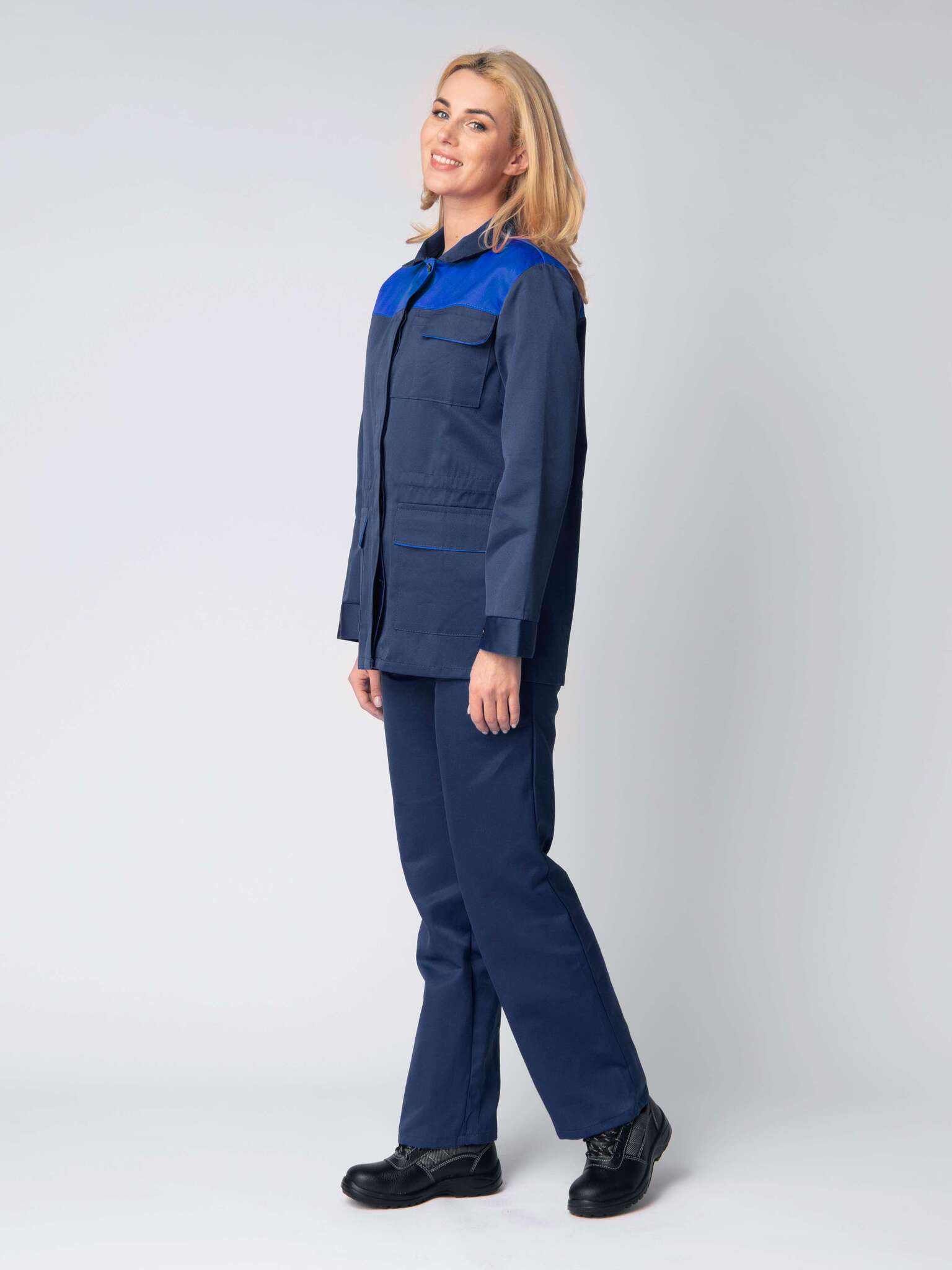 Костюм женский Передовик в тёмно-синем и васильковом цветах — это не просто рабочая одежда, а надежный помощник для вашего бизнеса. Изготовленный из высококачественной смесовой ткани, он сочетает в себе прочность и комфорт, что делает его идеальным для длительного использования в различных условиях. Основные преимущества этого костюма — стильный дизайн, функциональность и защита, что особенно важно для сотрудников на производстве.