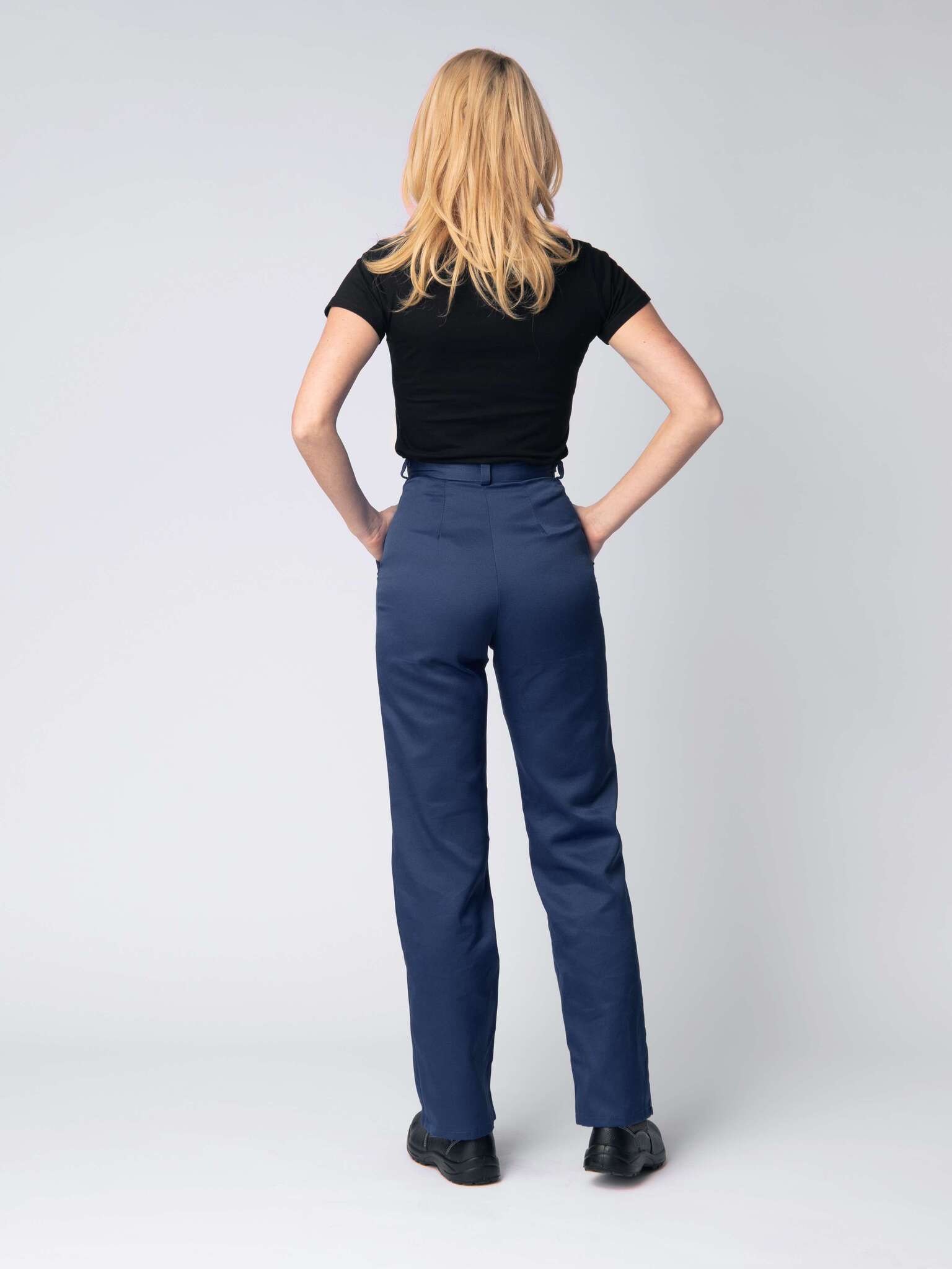 - Брюки: Прямые с притачным поясом и застежкой на пуговицы, два накладных кармана с наклонной линией входа.