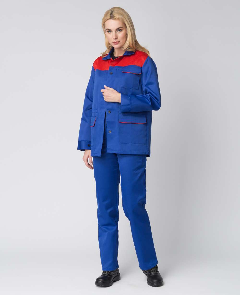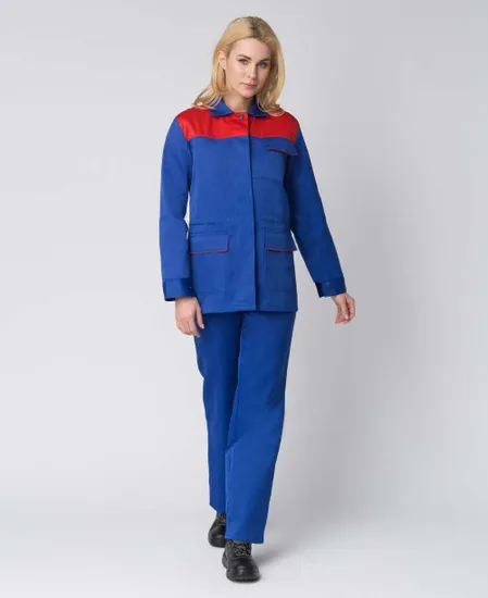 Костюм женский Передовик (васильковый/красный) – идеальный выбор для предприятий