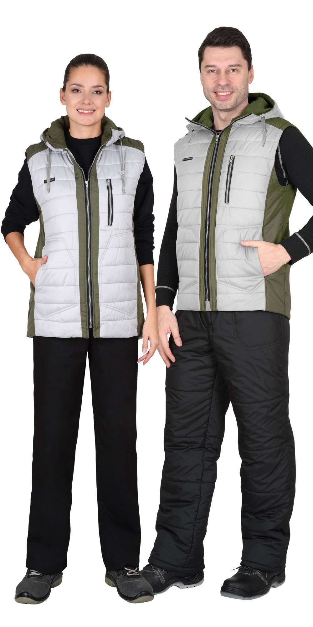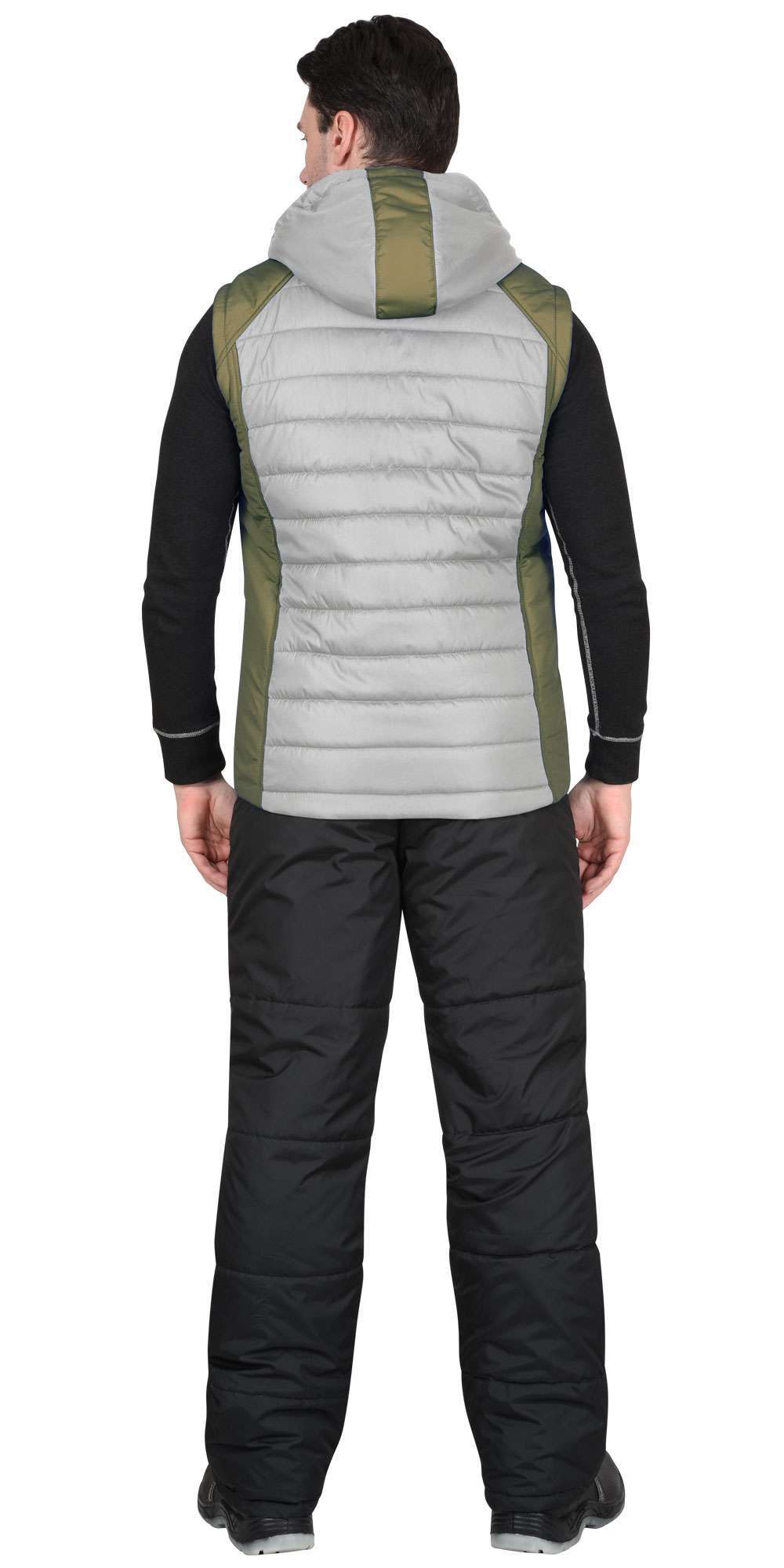 Жилет СИРИУС-УРБАН утепленный с капюшоном жемчужный с оливковым
