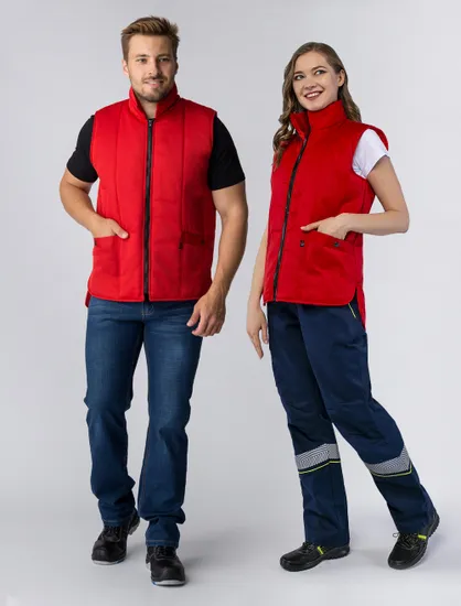 Представляем вашему вниманию жилет утепленный «Универсальный» красного цвета — идеальное решение для работы в прохладных и холодных помещениях. Этот жилет сочетает в себе стильный дизайн и функциональность, обеспечивая комфорт и защиту в любых условиях. Его прямой силуэт и удлиненная спинка позволяют свободно двигаться, а центральная застежка-молния обеспечивает надежную фиксацию.