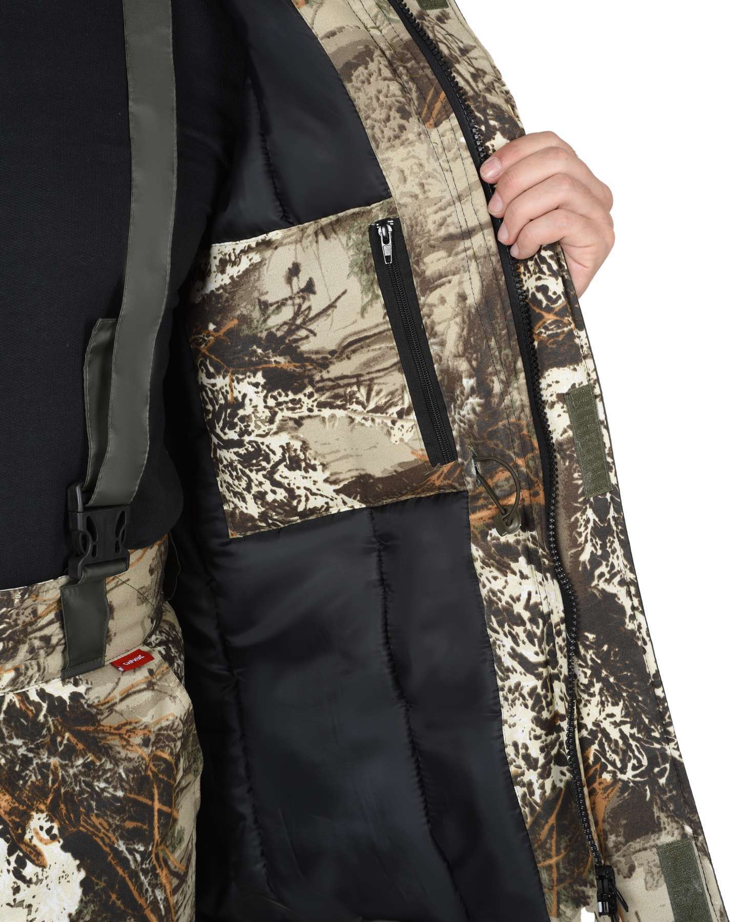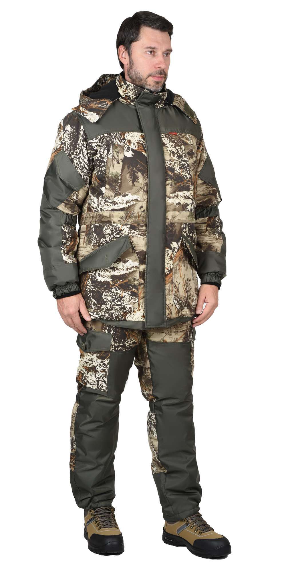 - Функциональные карманы: Куртка и брюки имеют множество карманов, включая антиворовые и карманы с фигурными клапанами для хранения необходимых принадлежностей.