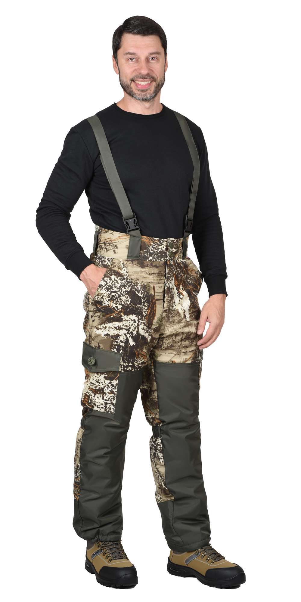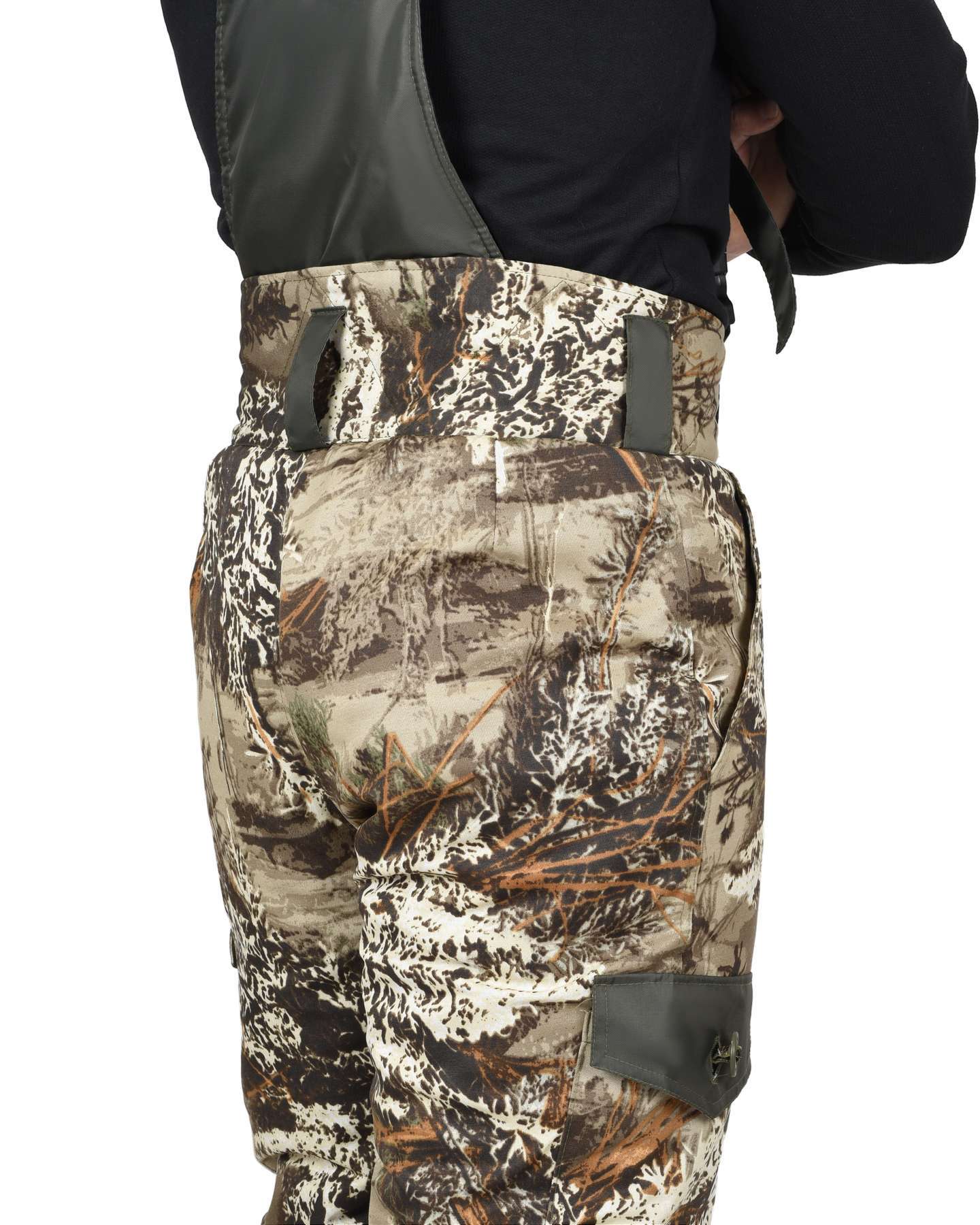 - Регулируемость: Куртка имеет регулируемый капюшон и талию, а брюки оснащены бретелями и широкими шлевками для удобной посадки.
