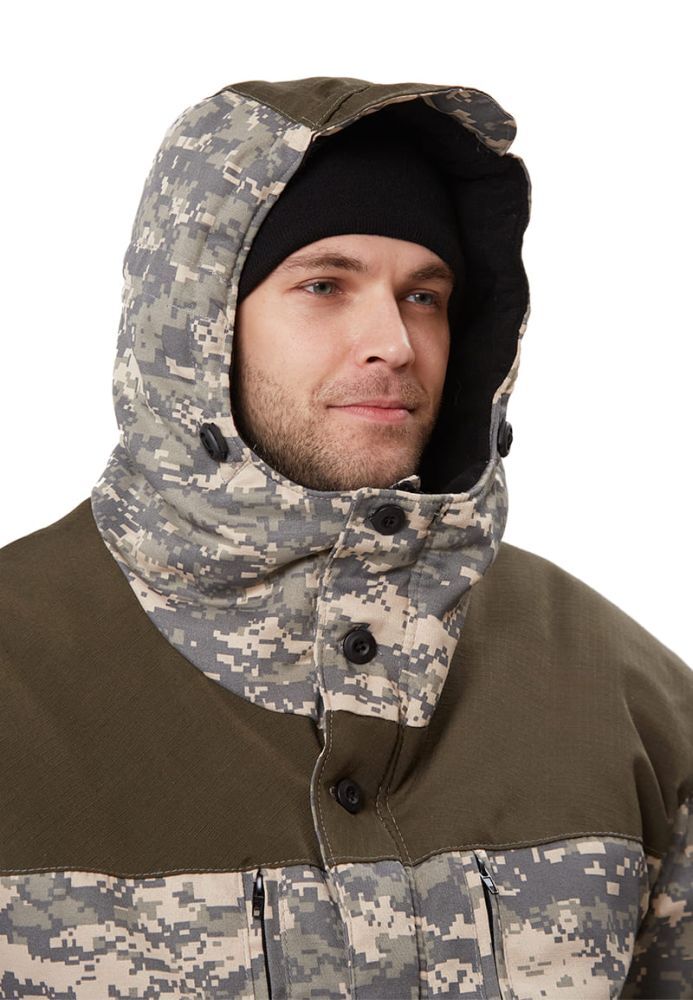- Материалы: смесовая ткань Рип-Стоп, синтепон в куртке (4 слоя) и брюках (3 слоя) для надежной теплоизоляции.