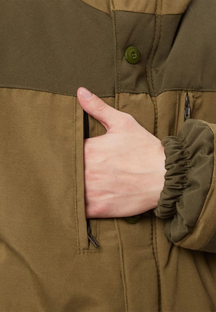 - Куртка: свободного кроя с центральной застежкой на молнию и утепленной планкой.